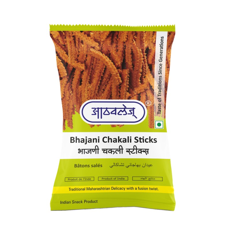 Athavale Bhajani Chakali Sticks are a deliciously crispy snack made from bhajani flour, a traditional Maharashtrian blend of roasted grains and spices. These savoury sticks offer an authentic homemade-style flavour with a satisfying crunch in every bite.